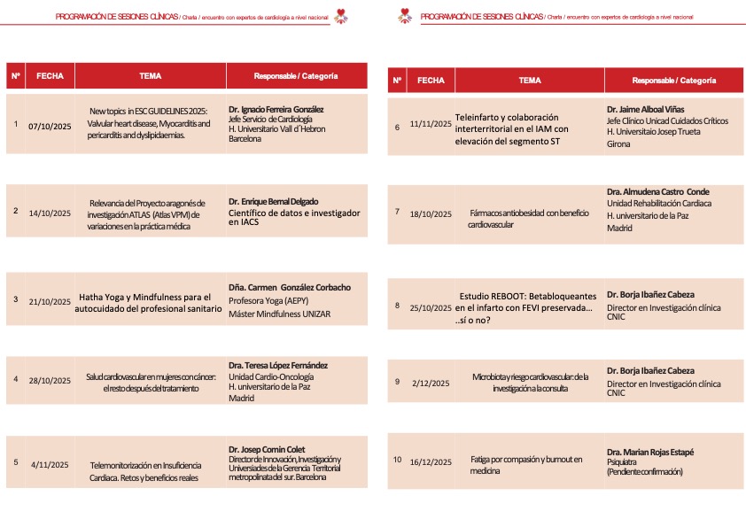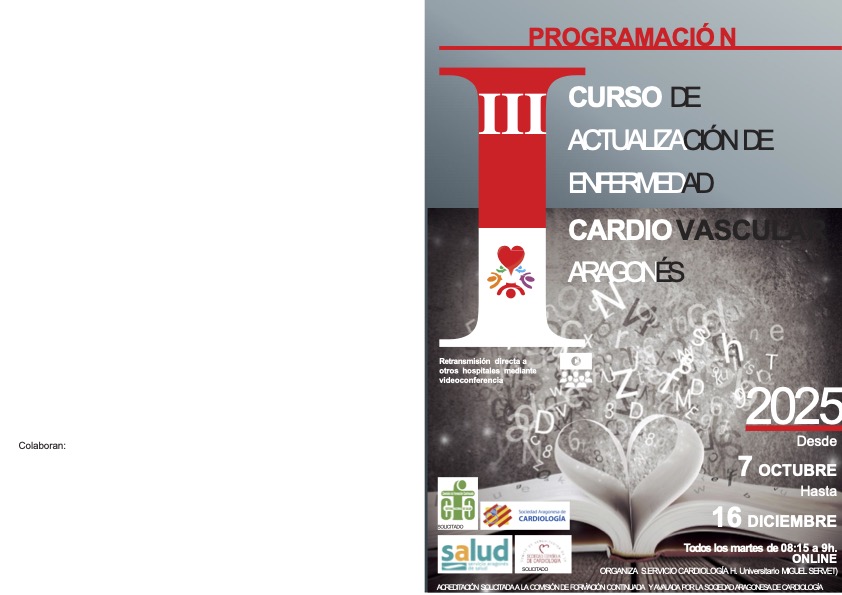 El Servicio de Cardiologia del Hospital Universitario Miguel Servet de Zaragoza, organiza del 7 de octubre al 16 de diciembre de 2025 el «III Curso de Actualización en enfermedad Cardiovascular Aragonés». Lidera el proyecto la Dra. Charo Ortas, jefa del Servicio de Cardiología del HUMS. Cuenta con el aval de la Sociedad Aragonesa de Cardiología. El curso se trasmite en directo a los diferentes hospitales de Aragón
